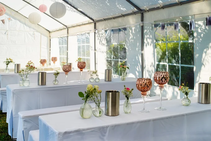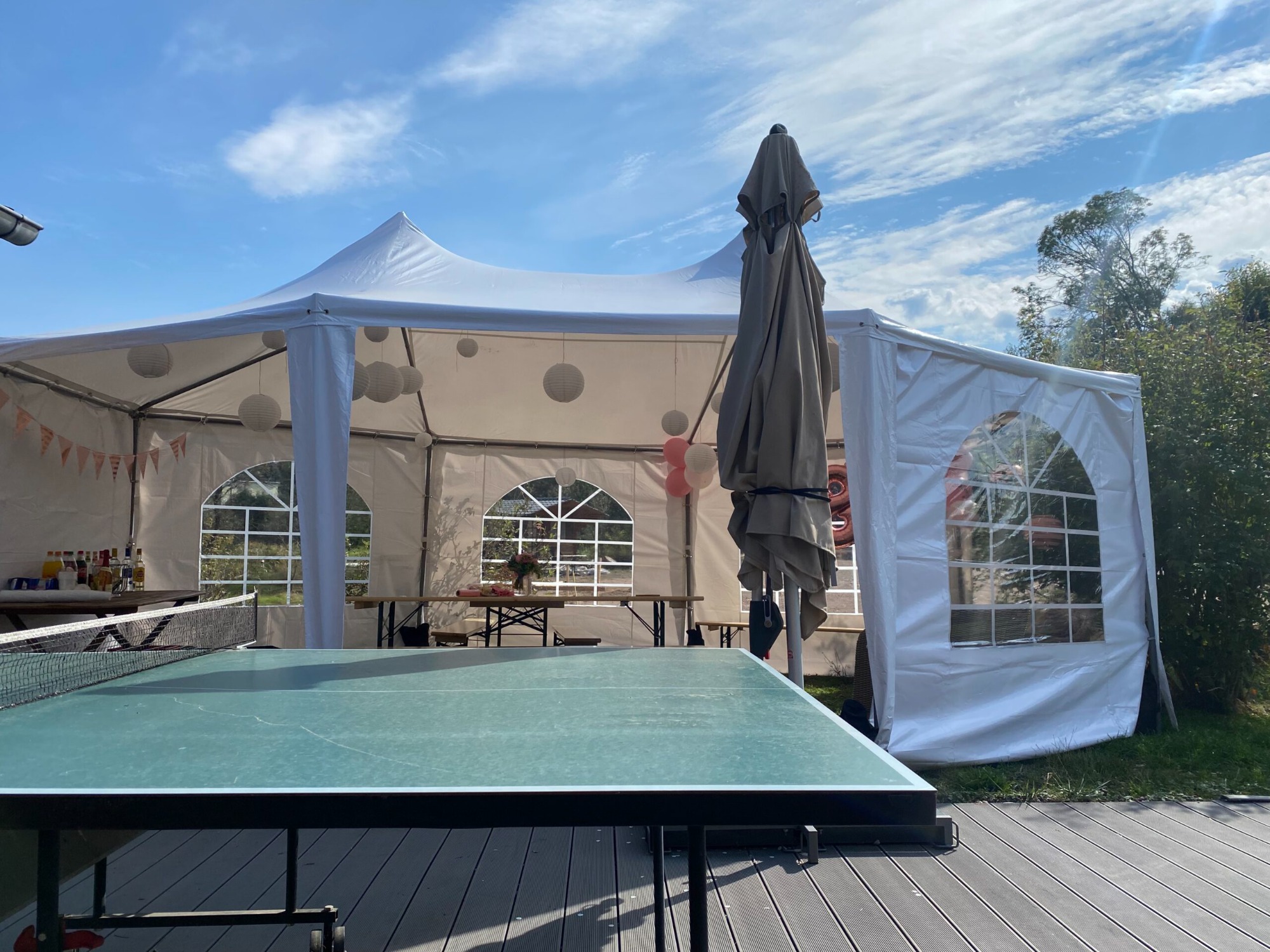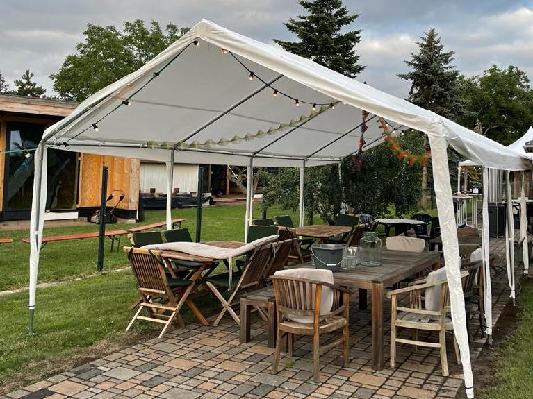 Mit 72 m² überdachter Fläche bietet unser 6×12 m Zelt reichlich Raum für 80 bis 90 Personen (je nach Bestuhlung) – ideal für Hochzeiten, Geburtstagsfeiern, Vereinsfeste, Firmenevents oder andere besondere Anlässe. Ob gemütlich bestuhlt oder offen für Tanz und Bewegung: Dieses Zelt passt sich Ihren Plänen an.
