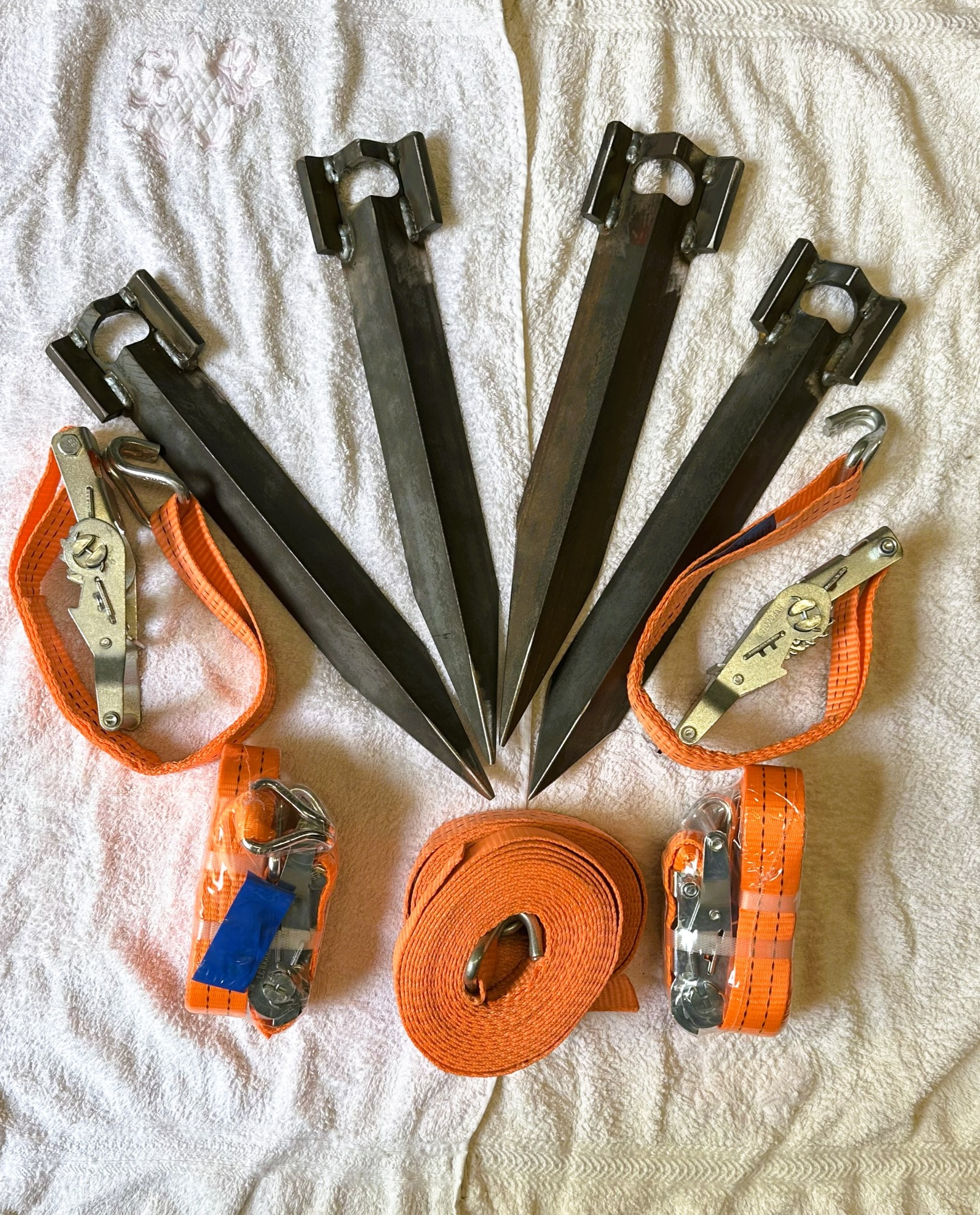Damit Ihr Zelt auch bei windigem Wetter fest am Boden bleibt, bieten wir eine professionelle Sturmsicherung an: