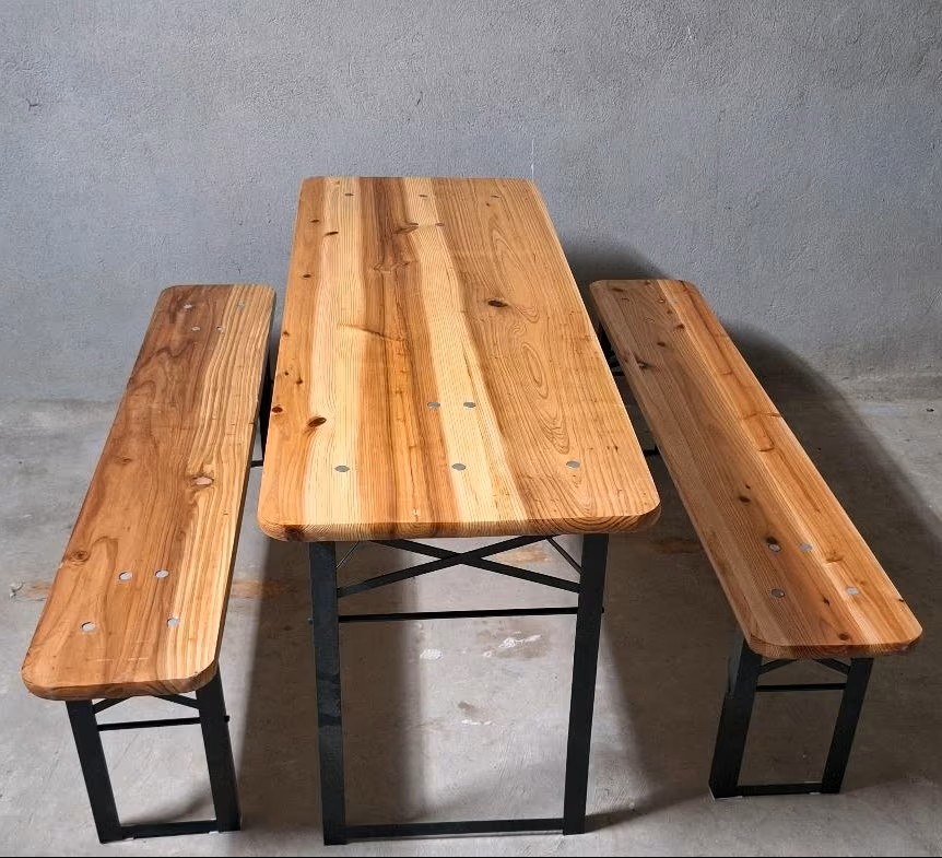 Unsere klassischen Bierzeltgarnituren bestehen aus einem 1,80 m langen und 0,45 m breiten Tisch sowie zwei passenden Bänken. Sie bieten Platz für 6–8 Personen und eignen sich ideal für Feiern, Feste oder als flexible Sitzgelegenheit unter dem Zelt. Die Garnituren sind stabil, wetterfest und platzsparend stapelbar.